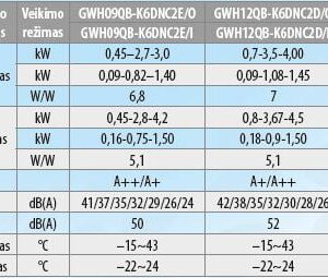 | Šaldymo galia KW | 2,7 (0,85-4,0) | |||
