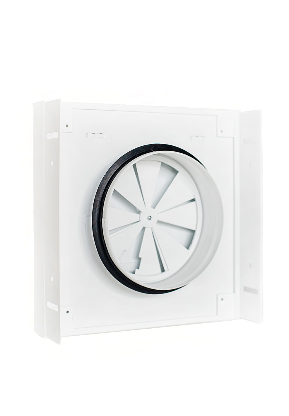 Galimi pajungimo diametrai: 100 mm, 125 mm, 160 mm. Spalva: balta (RAL9016). Išmatavimai: 200 x 200 mm (270 x 270 mm, jei pajungimas 160 mm).