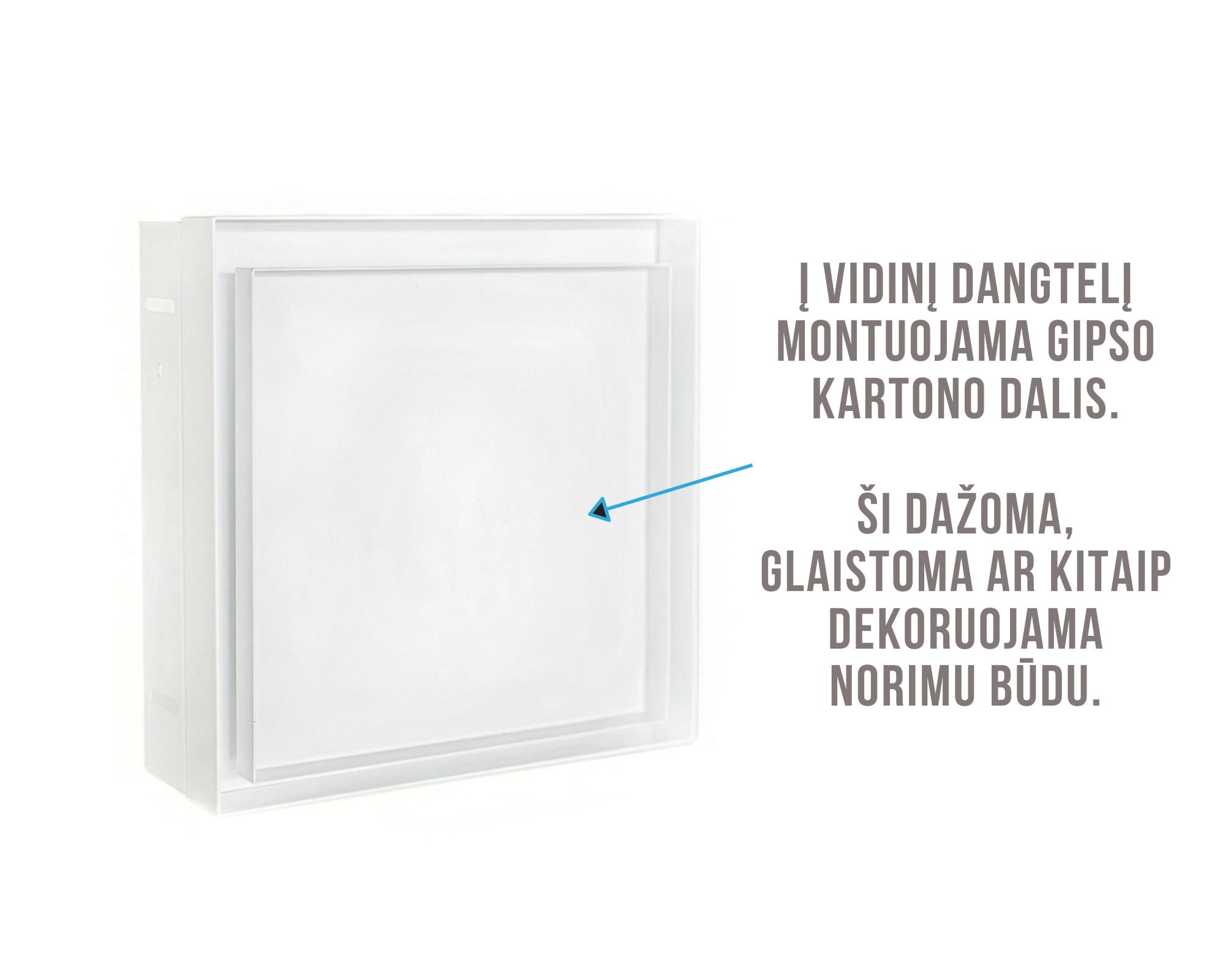 Paviršiaus dangtelis tvirtinamas magnetais. Dangtelyje montuojamas gipso kartonas, su balansavimo sklende.