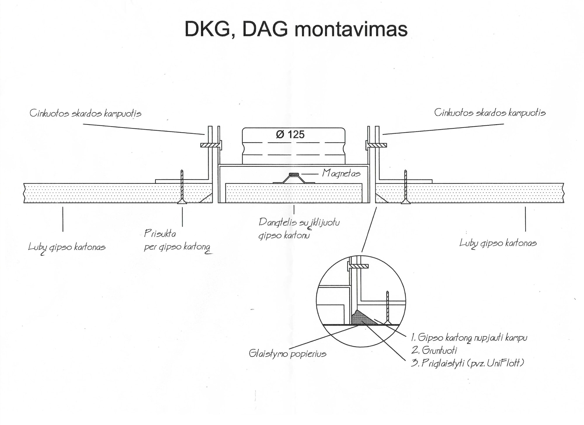 Galimi pajungimo diametrai: 100 mm, 125 mm.